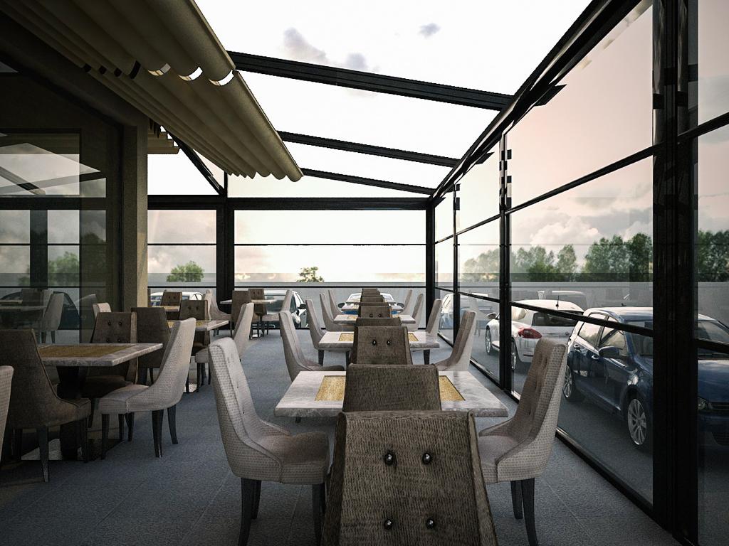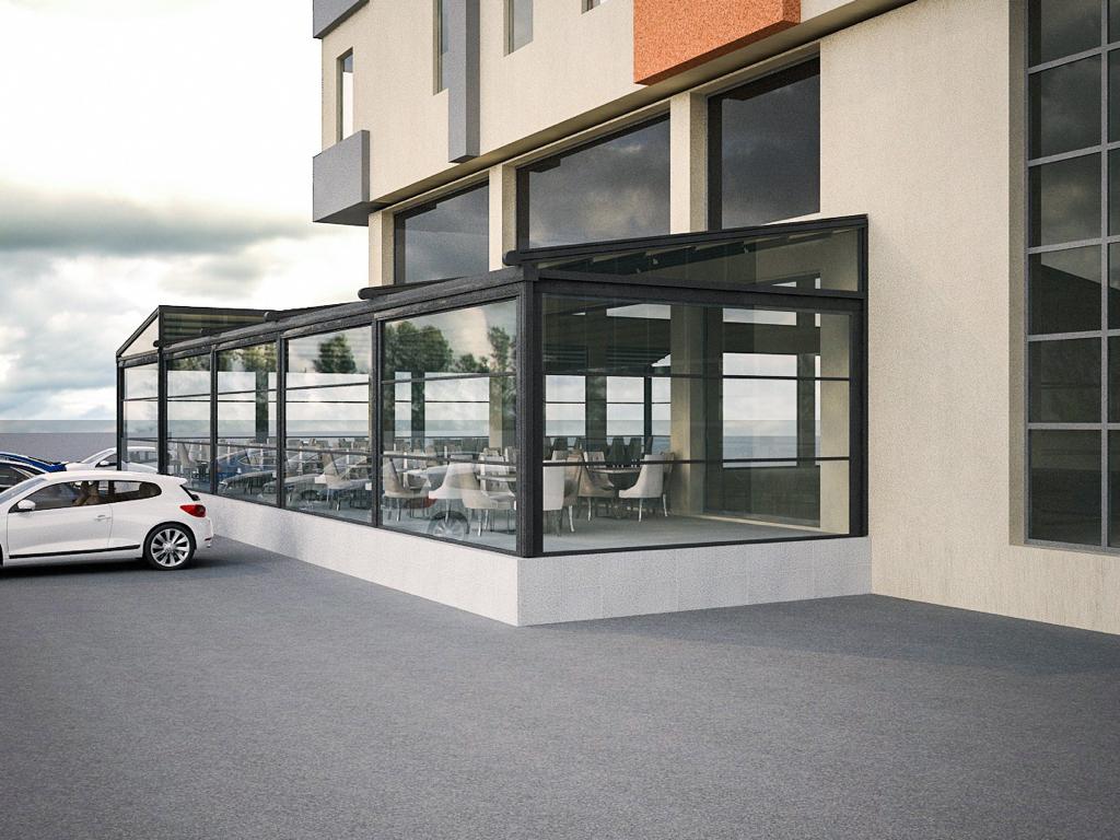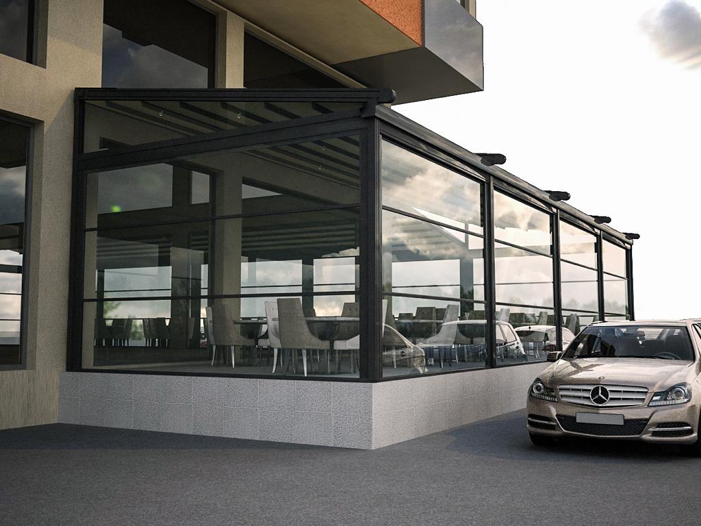 زجاج متحرك عبارة عن زجاج يعمل يرسموا كنترول للأعلى والأسفل حيث يمكن إغلاق المكان بالكامل أو فتحه حسب العوامل الجوية